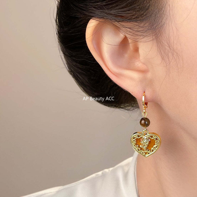 C관 - 하트 레진 플라워 호안석 핸드메이드 귀걸이 [7148] 25.11-4