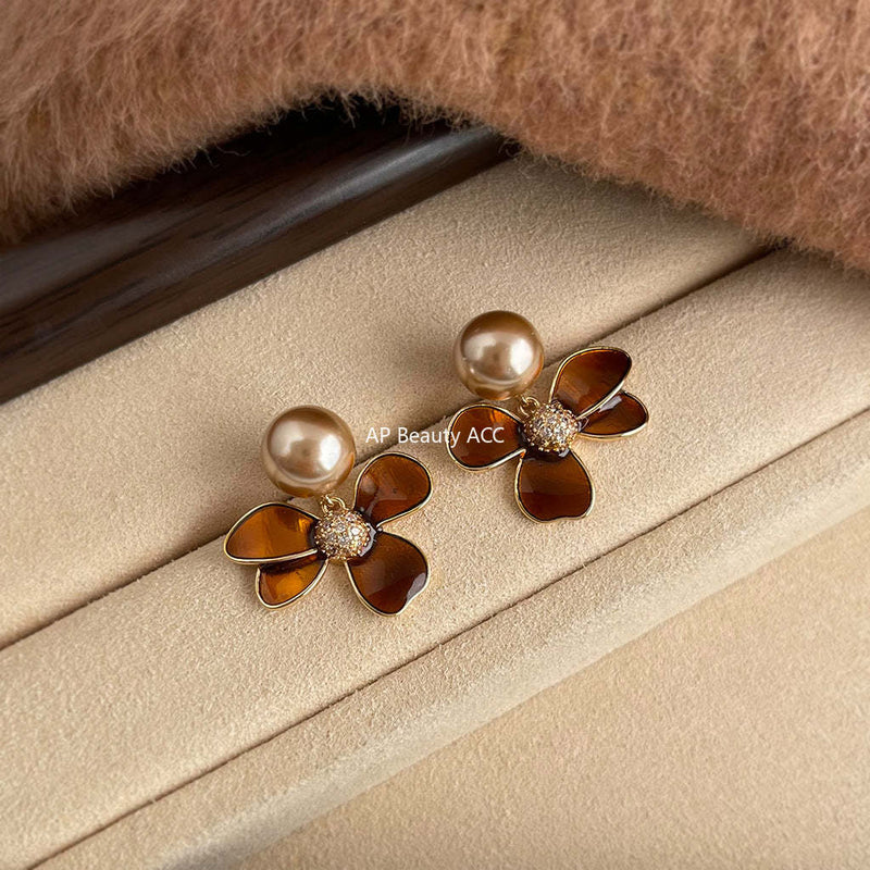 C관 - 핸드페인팅 플라워 디자인 진주 925 은침 귀걸이 [7105] 25.11-3