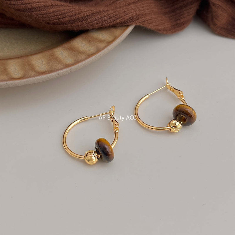 C관 - 천연석 호안석 원형 925 은침 링 귀걸이 [7113] 25.11-3