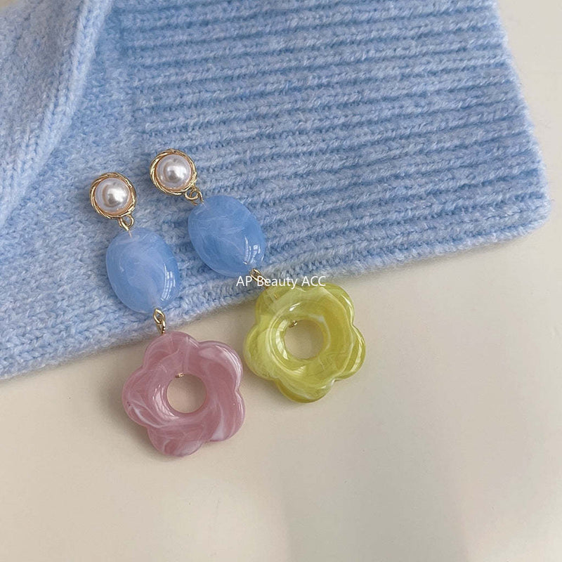 C관 - 상반된 디자인 핸드메이드 꽃 은침 귀걸이 [3728] 24.04-1