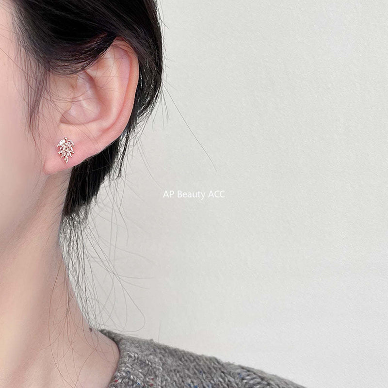 C관 - 밀 이삭 미니 큐빅 간결한 패셔너블한 은침 귀걸이 [3735] 24.04-1
