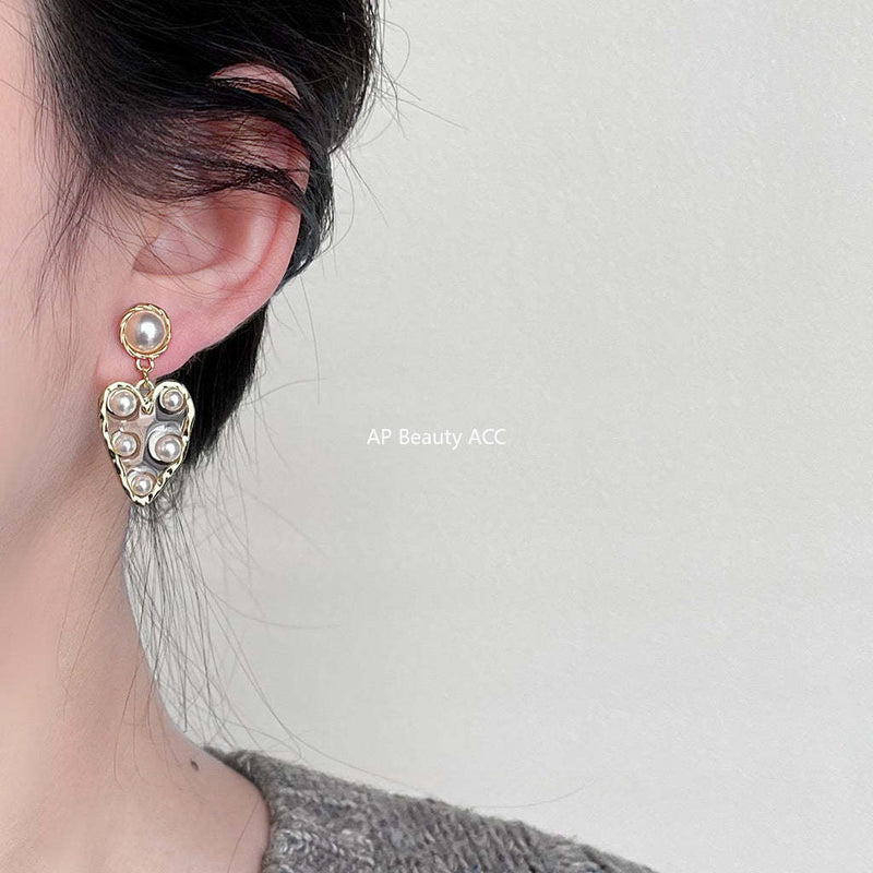 C관 - 예술적인 감성 사랑스러운 하트 14K 도금 진주 귀걸이 [3730] 24.04-1