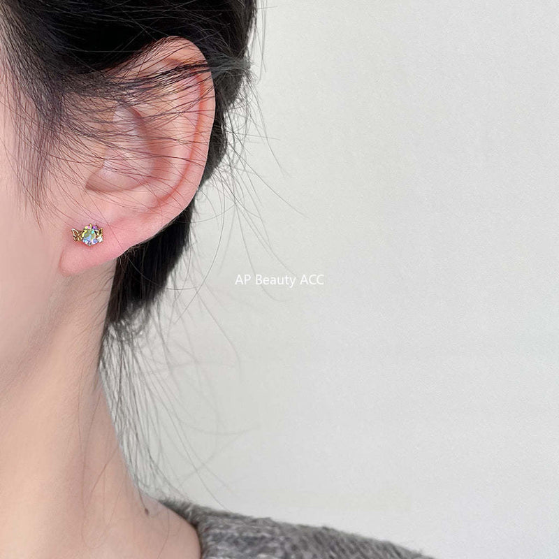 C관 - 미니 큐빅 로즈 골드 도금 나비 귀걸이 숲 속 스타일 귀걸이 [3846] 24.04-2