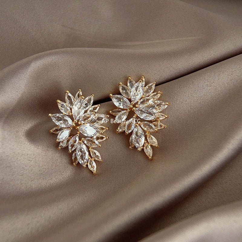 C관 - 14K 도금 고급스러운 미니 큐빅 은침 귀걸이 고급스러운 패셔너블한 밤나무 귀걸이 [3729] 24.04-2