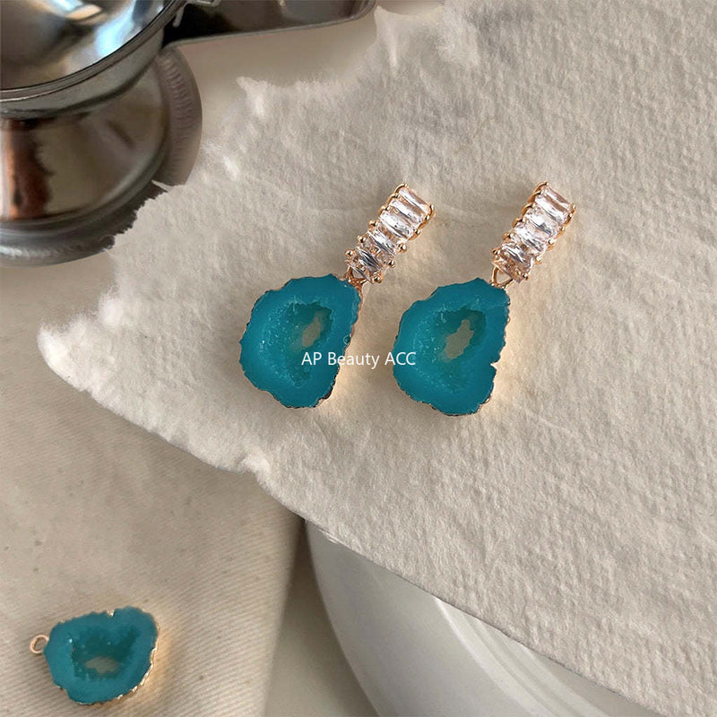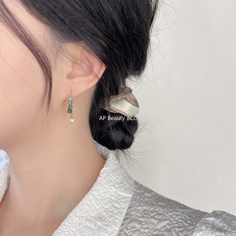 C관 - 천연석 녹색 수초 숲 속 스타일 14K 도금 은침 귀걸이 [3909] 24.05-1
