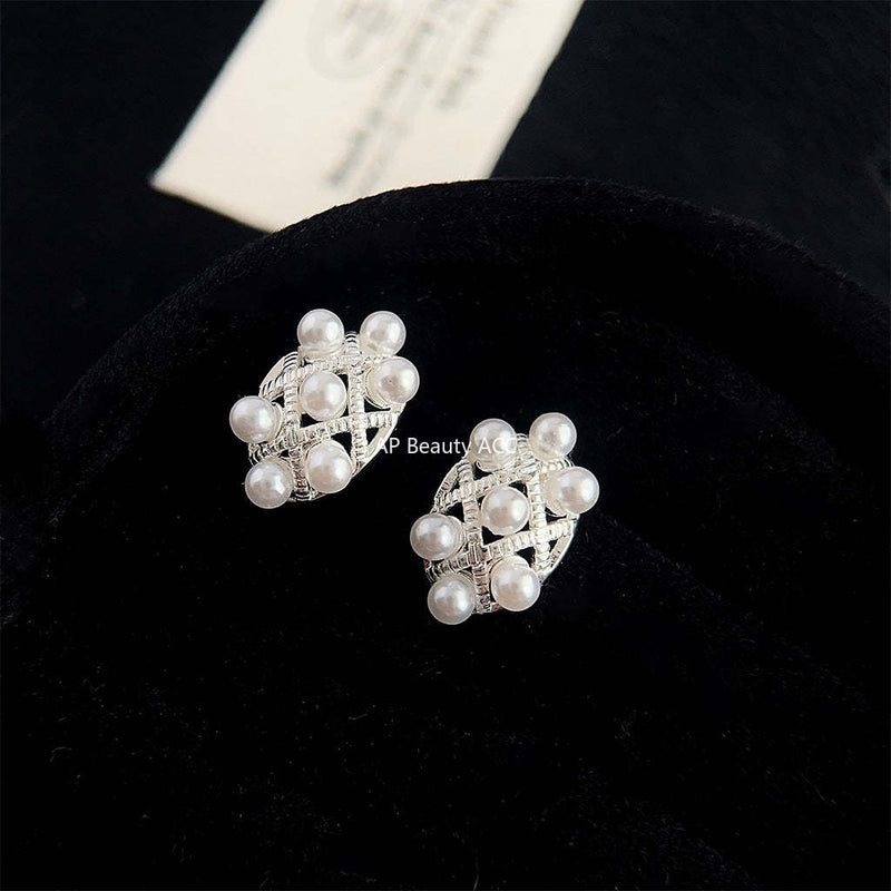 C관 - 복고풍 레진 진주 큐빅 귀걸이 [3998] 24.05-1