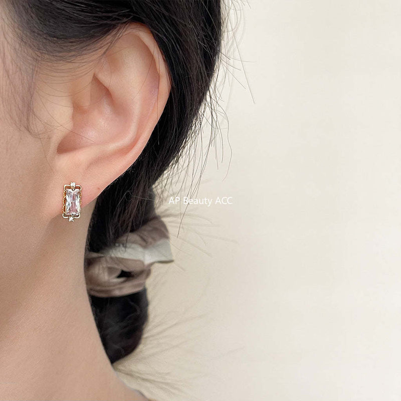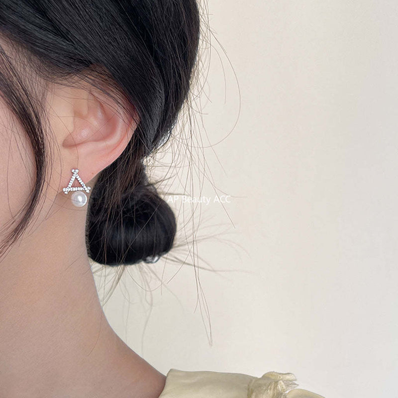 C관 - 미니 큐빅 은침 불규칙 글라스 진주 귀걸이 [4000] 24.05-1