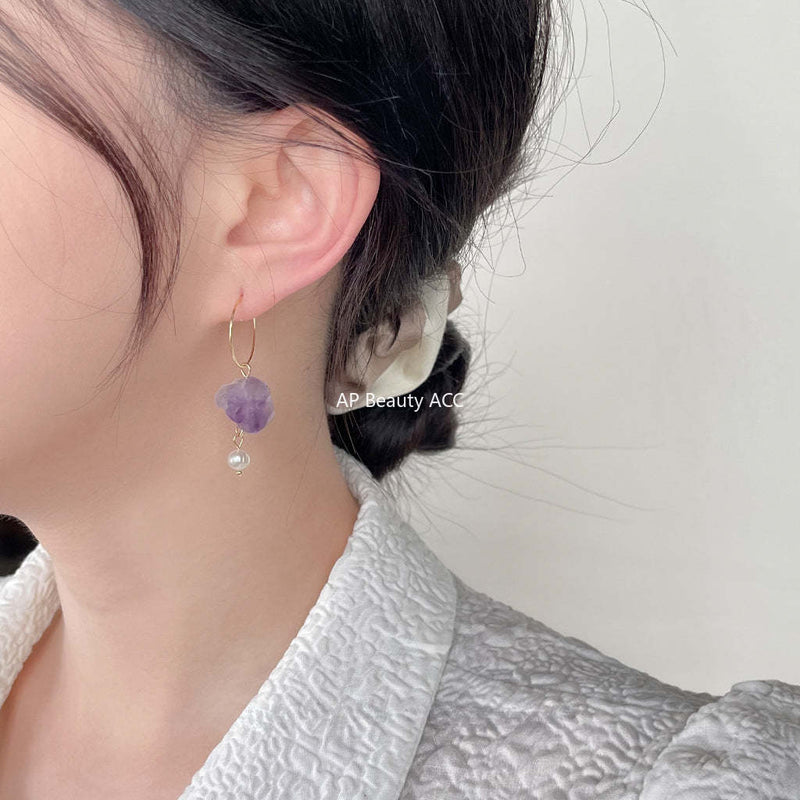 C관 - 천연석 자수정 2024 신상 디자인 불규칙 핸드메이드 귀걸이 [3911] 24.05-1