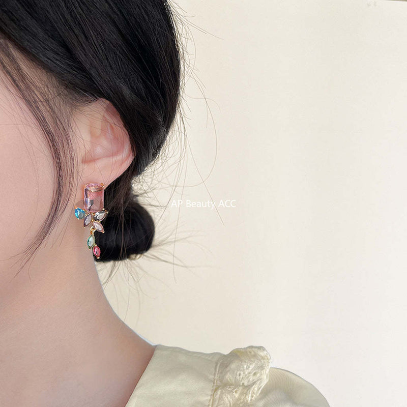 C관 - 여름 2024 신상 숲 속 스타일 유리 크리스탈 은침 귀걸이 [3978-3979] 24.05-1