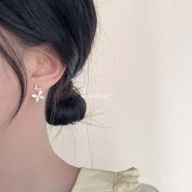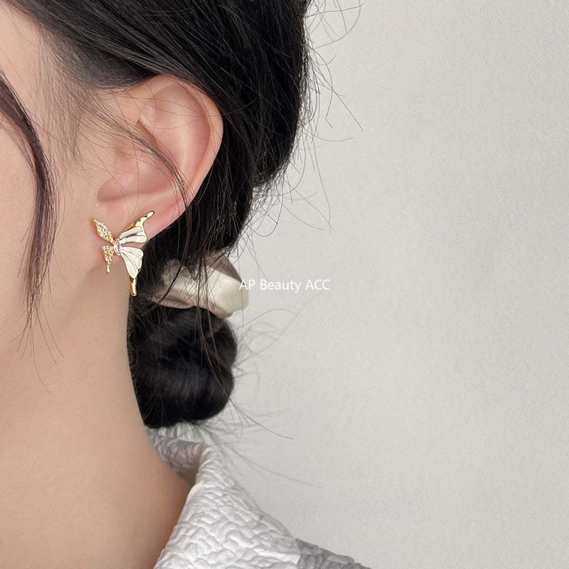 C관 - 미니 큐빅 글라스 묘안석 나비 14K 도금 은침 귀걸이 [3980] 24.05-1