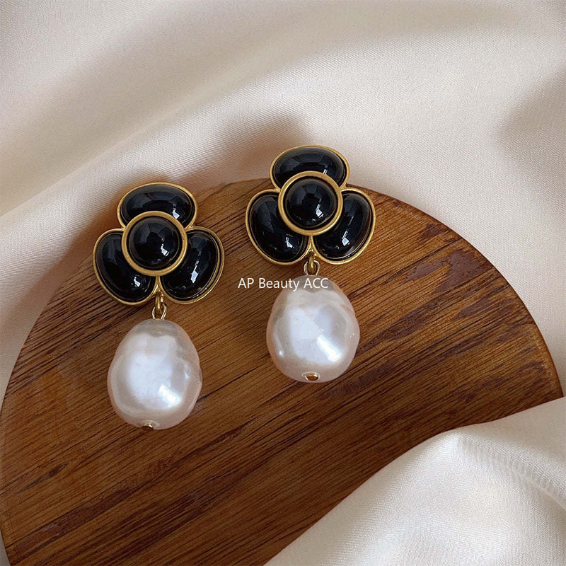 C관 - 복고풍 무광 도금 대형 진주 꽃 귀걸이 [3868] 24.05-2