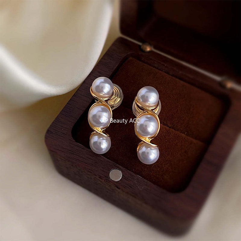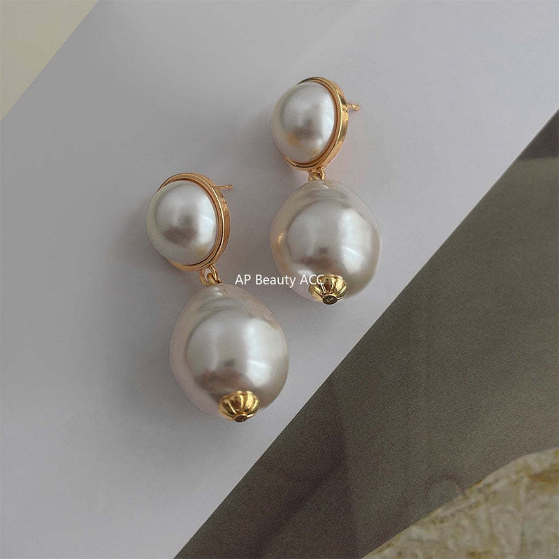 C관 - 14K 도금 고급스러운 복고풍 레진 진주 귀걸이 [3947] 24.05-2