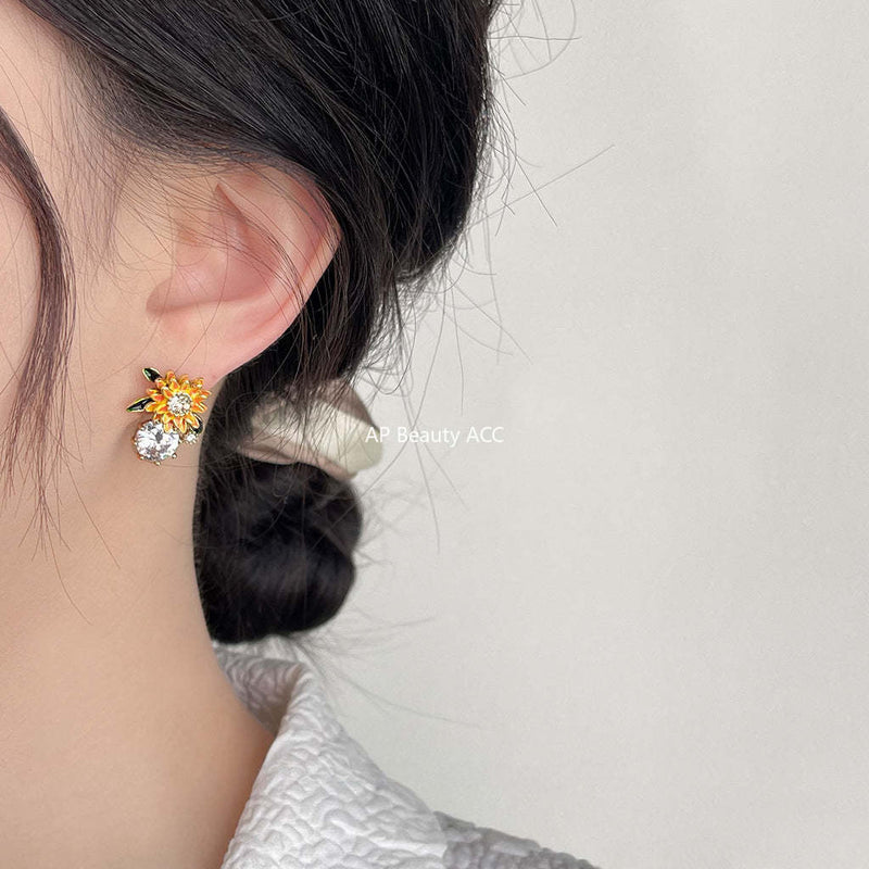 C관 - 14K 도금 숲 속 스타일 고급스러운 꽃 오일 코팅 귀걸이 [3914] 24.05-2