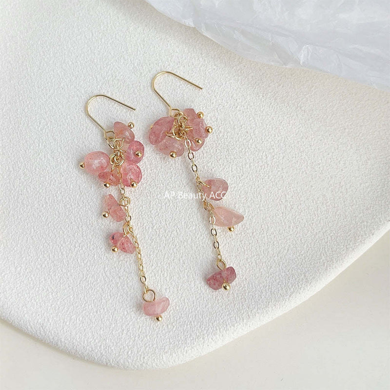 C관 - 14K 도금 숲 속 감성 천연석 스트로베리 쿼츠 원조 디자인 귀걸이 [4078] 24.05-3
