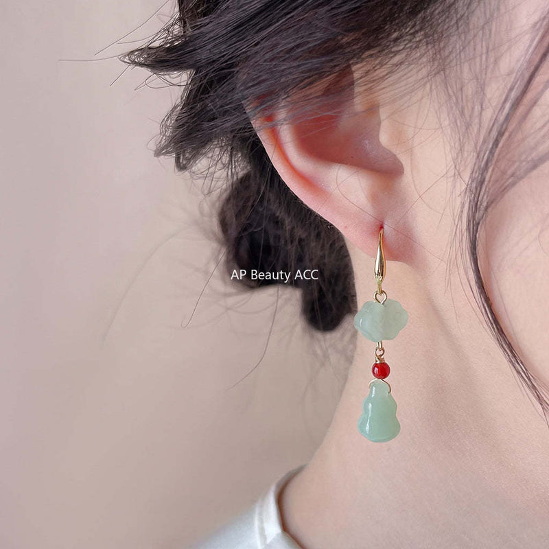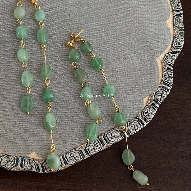 C관 - 핸드메이드 아벤츄린 숲 속 감성 고급스러운 긴 귀걸이 [4093] 24.05-3