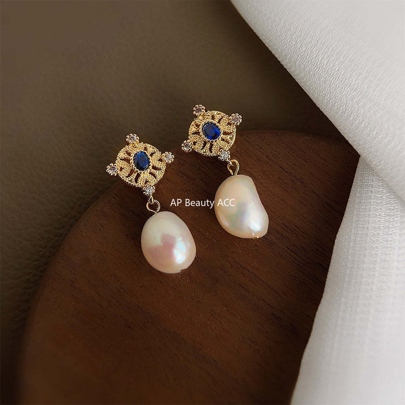 C관 - 14K 도금 바로크 형상 담수 진주 미니 큐빅 은침 귀걸이 프렌치 복고풍 귀걸이 [4052] 24.05-2