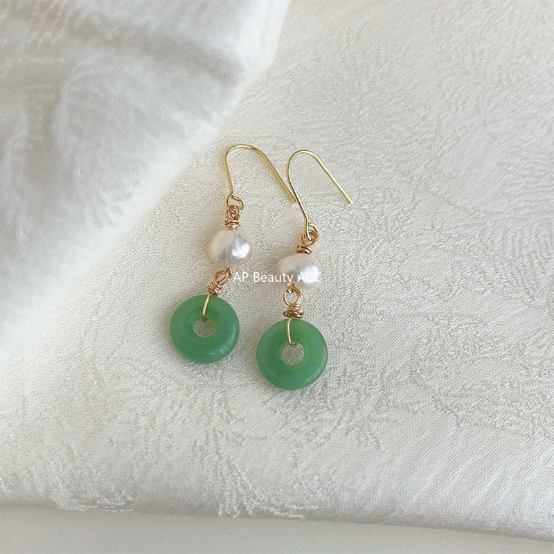 C관 - 담수 진주 핸드메이드 유리 합성옥 복고풍 개성 있는 귀걸이 [4094] 24.05-3