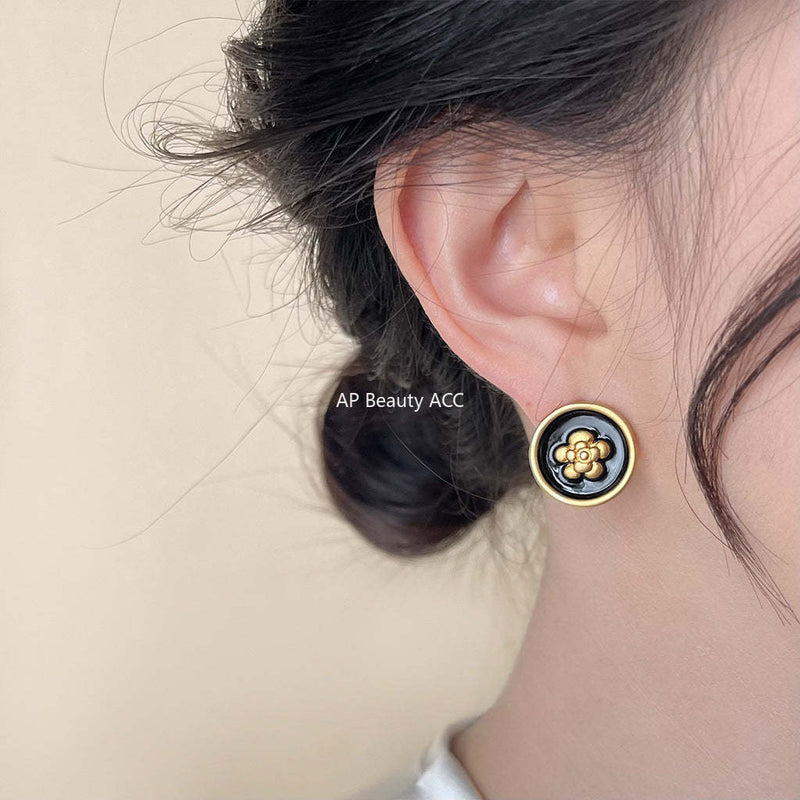 C관 - 무광 블랙 오일 코팅 카멜리아 이어커프 귀걸이 [4236-4237] 24.06-2