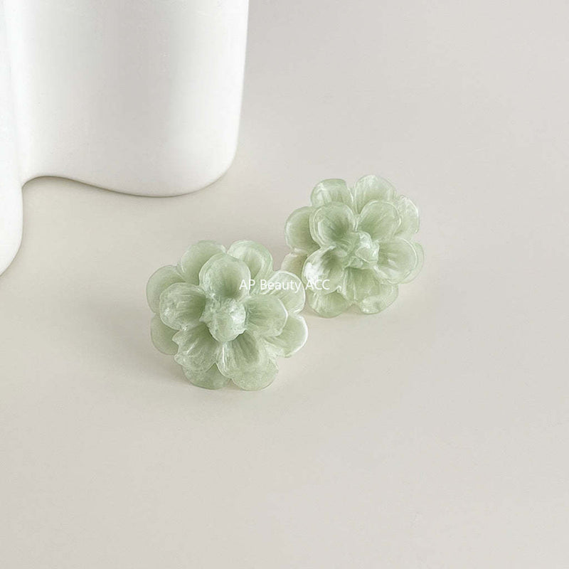 C관 - 민트 그린 장미꽃 디테일 14K 도금 귀걸이 [4372] 24.06-3