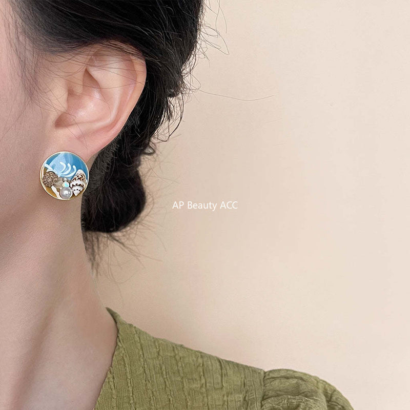 C관 - 아이리스 레진 소재 여름 청량한 14K 도금 귀걸이 [4374] 24.06-3