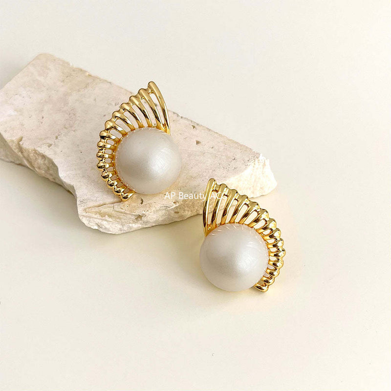 C관 - 14K 도금 물결 무늬 우아한 귀걸이 [4246] 24.06-3