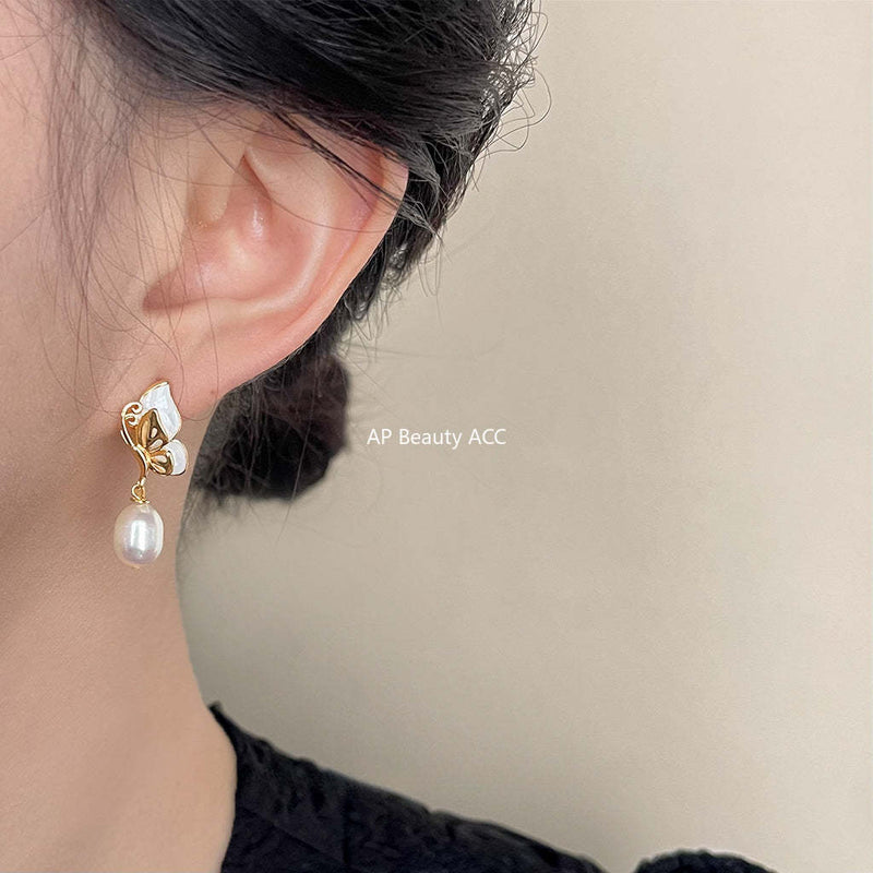 C관 - 담수 진주 나비 디테일 우아한 14K 도금 귀걸이 [4335] 24.06-3