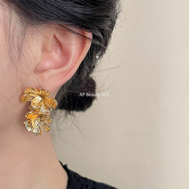 C관 - 입체 꽃 14K 도금 세련된 귀걸이 [4333] 24.06-3