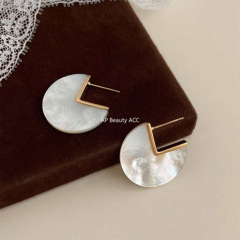 C관 - 자개 기하학 원형 14K 도금 세련된 귀걸이 [4485] 24.07-1