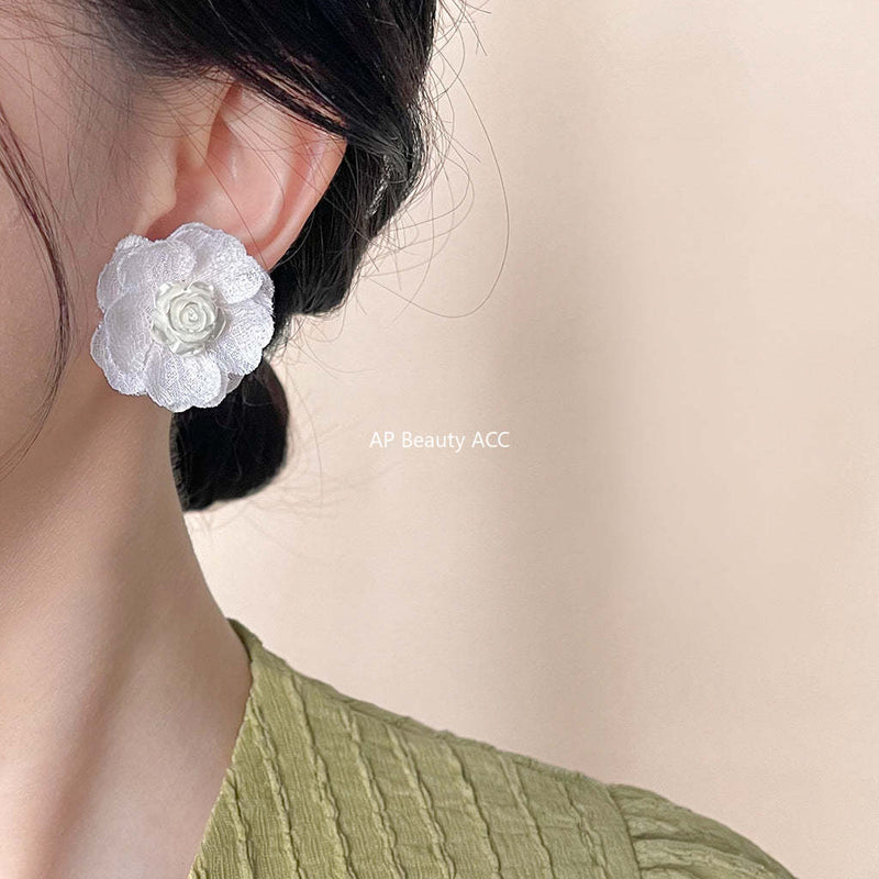 C관 - 화이트 망사 꽃 은침 14K 도금 우아한 귀걸이 [4404] 24.07-1