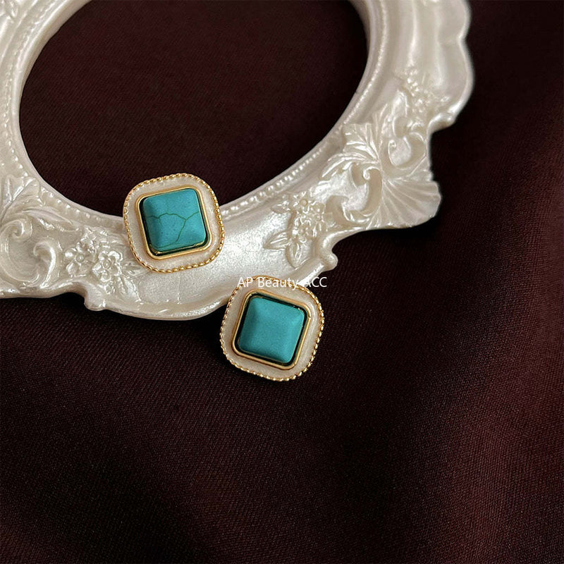 C관 - 합성 터키석 에나멜 사각형 기하학 14K 도금 복고풍 귀걸이 [4309] 24.07-1