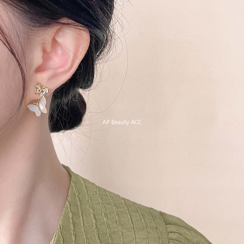 C관 - 자개 큐빅 나비 리본 14K 도금 귀걸이 [4396] 24.07-1