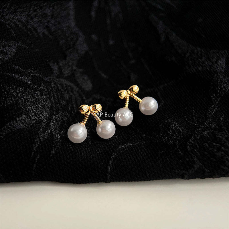 C관 - 미니 리본 귀여운 백금 도금 귀걸이 [4460] 24.07-1