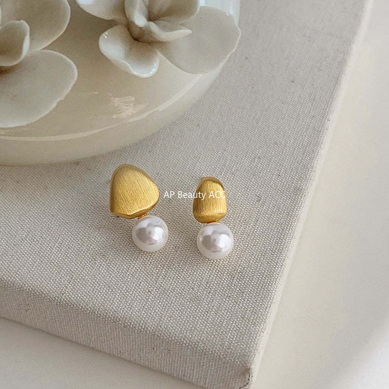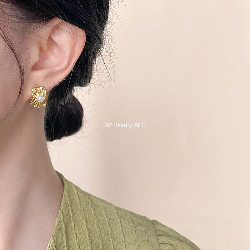 C관 - 기하학 텍스처 14K 도금 진주 심플 세련된 귀걸이 [4399] 24.07-1