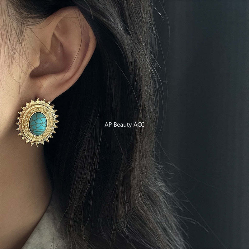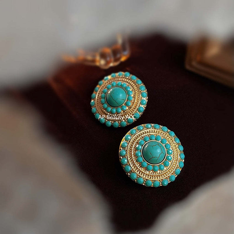 C관 - 합성 터키석 기하학 원형 빈티지 14K 도금 세련된 귀걸이 [4314] 24.07-1