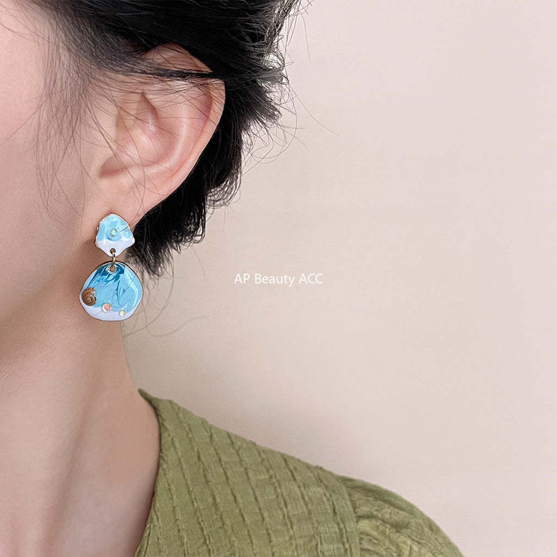 C관 - 글라스 진주 비대칭 텍스처 드롭 14K 도금 은침 귀걸이 [4243] 24.07-1