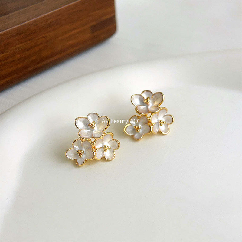 C관 - 14K 도금 오스만 꽃 디테일 우아한 심플 귀걸이 [4338] 24.07-1
