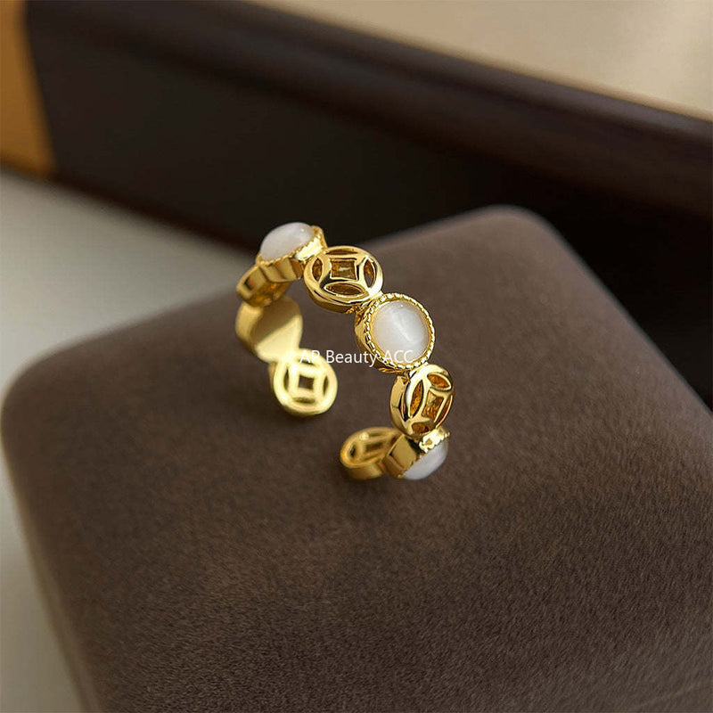 C관 - 18K 도금 글라스 묘안석 오픈형 반지 [7241] 25.12-3