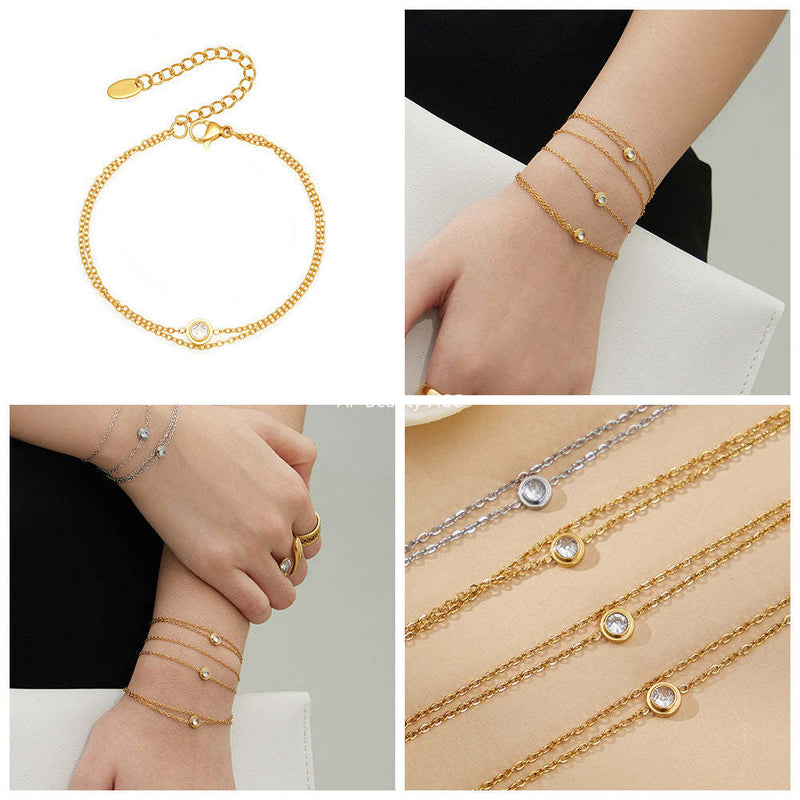 D관 - 스테인리스 스틸 18K 도금 원형 큐빅 더블 레이어드 팔찌 [E198] 25.12-3