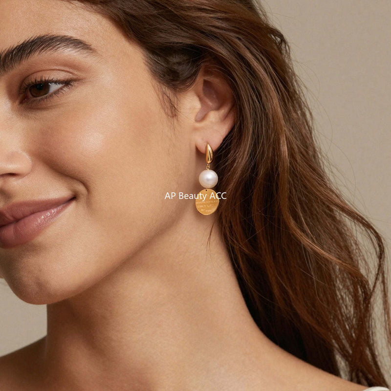 D관 - 플레이트 알파벳 D 비즈 18K 도금 스테인리스 스틸 귀걸이 [F860-F861] 25.12-2