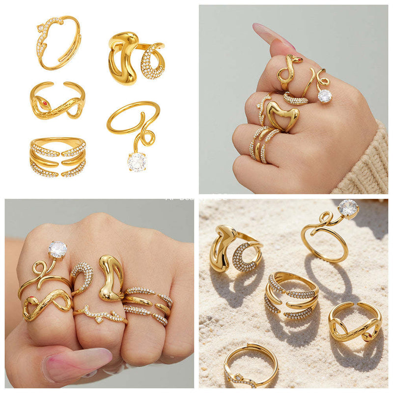 D관 - 스테인리스 스틸 18K 도금 미니 큐빅 오픈형 반지 [A382-A-A622-A674] 25.12-3