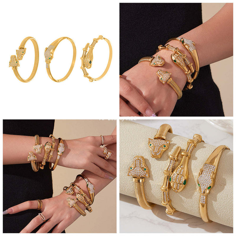D관 - 스테인리스 18K 도금 풀큐빅 뱀머리 오픈형 팔찌 [Z506-Z507-Z508] 25.10-5