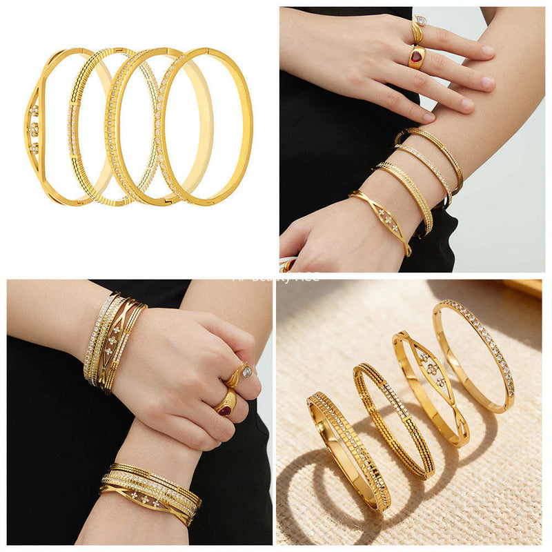 D관 - 큐빅 라인 18K 도금 스테인리스 스틸 뱅글 팔찌 [Z512-15] 25.12-2