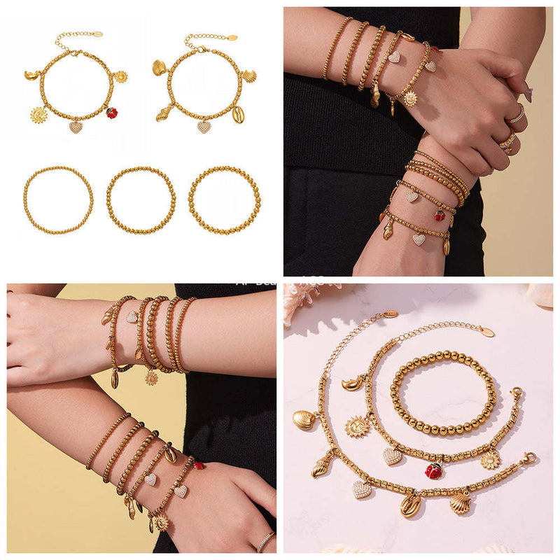 D관 - 스테인리스 18K 도금 하트 멀티 펜던트 스틸 비즈 팔찌 [E696-E697-E698] 25.10-5