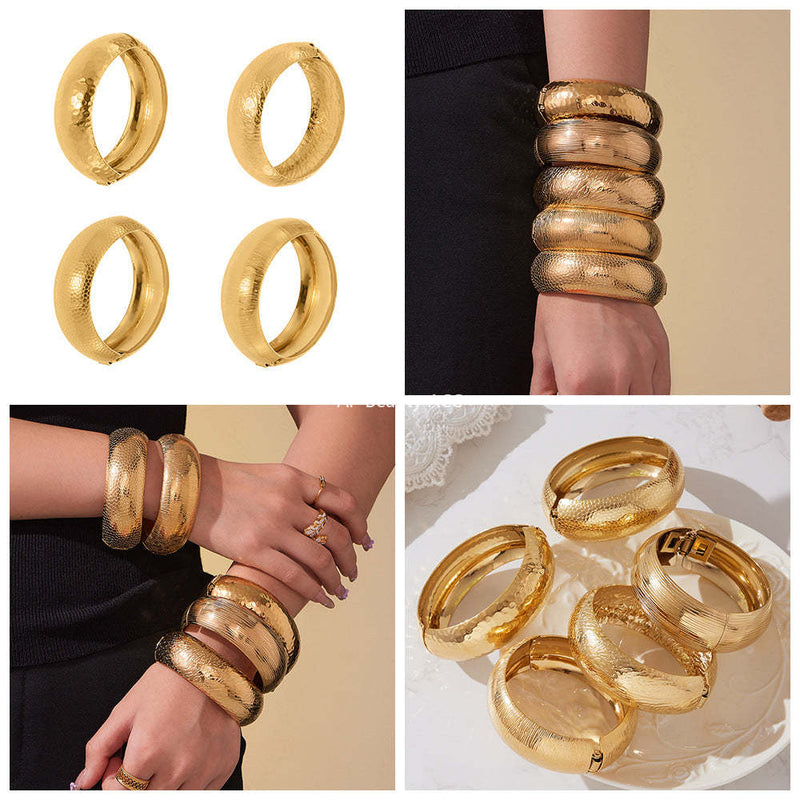 D관 - 스테인리스 18K 도금 패턴 볼드 오픈형 팔찌 [Z499] 25.10-5