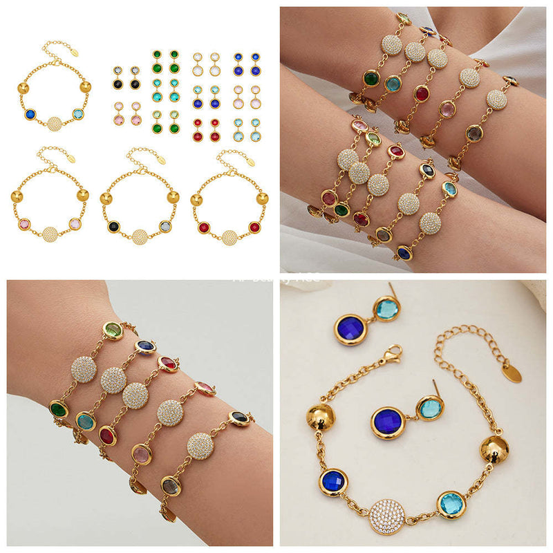 D관 - 스테인리스 스틸 풀 큐빅 글라스 스톤 18K도금 팔찌 귀걸이 [TXE508] 25.12-1