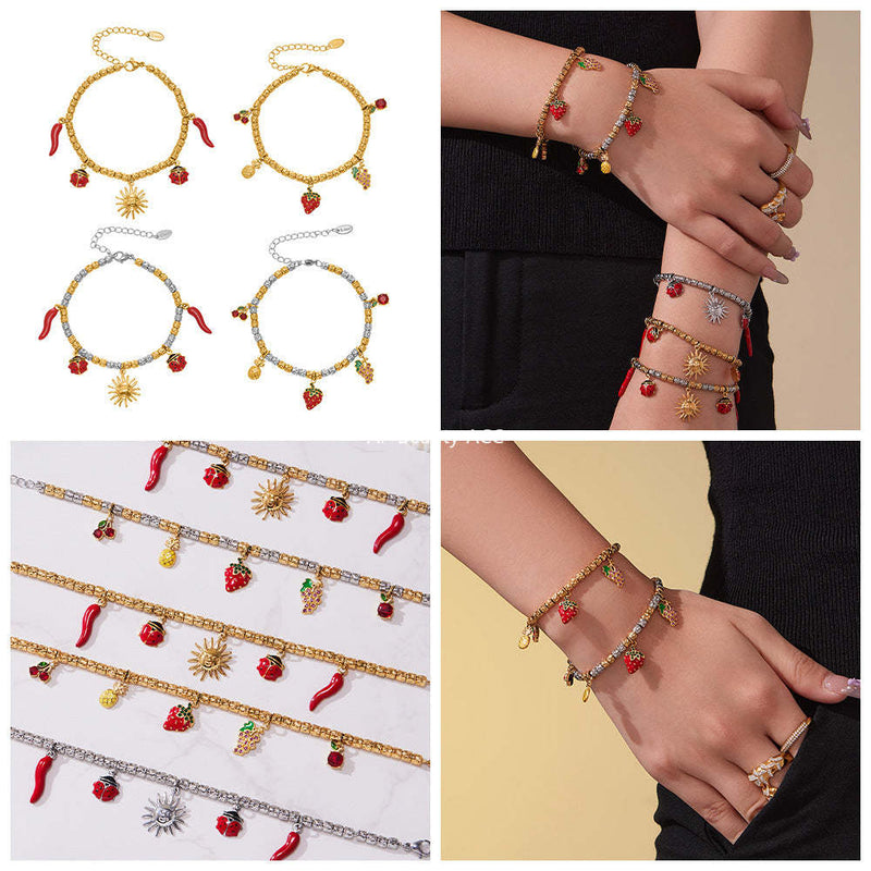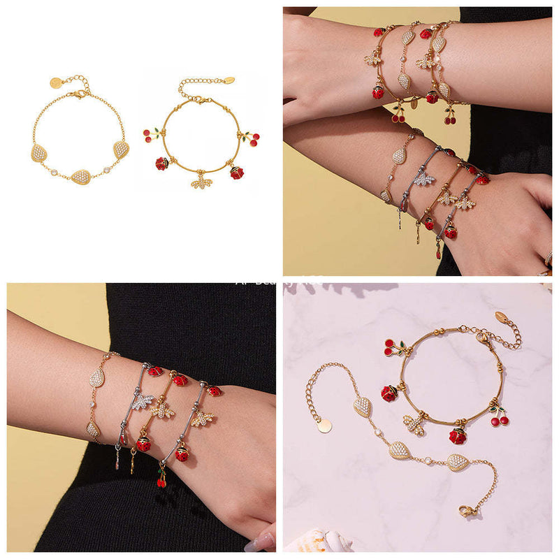 D관 - 스테인리스 스틸 큐빅 벌 체리 물방울 멀티 펜던트 팔찌 [E130-E160] 25.10-5