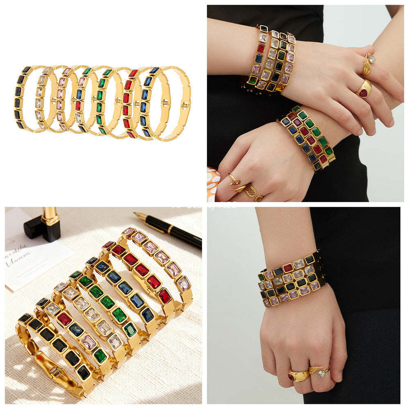 D관 - 사각 글라스 스톤 18K 도금 스테인리스 스틸 팔찌 [Z518] 25.12-2
