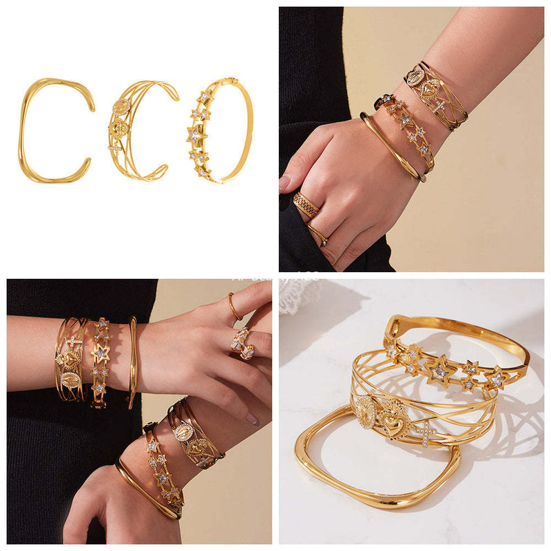 D관 - 스테인리스 18K 도금 큐빅 별 하트 비정형 팔찌 [Z500-Z501-Z502] 25.10-5