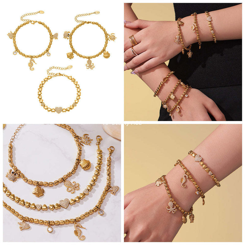 D관 - 스테인리스 18K 도금 큐빅 해마 멀티 펜던트 팔찌 [E693-E694-E695] 25.10-5
