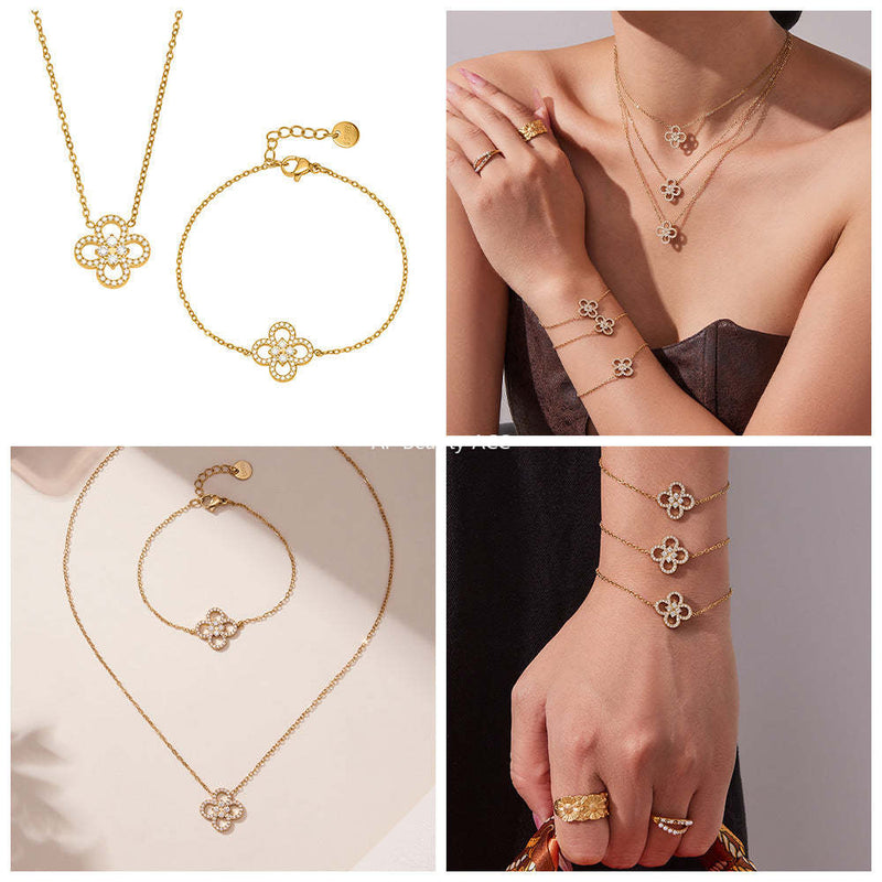 D관 - 네잎클로버 큐빅 18K 도금 스테인리스 목걸이 팔찌 [TXP474-TXE474] 25.11-3